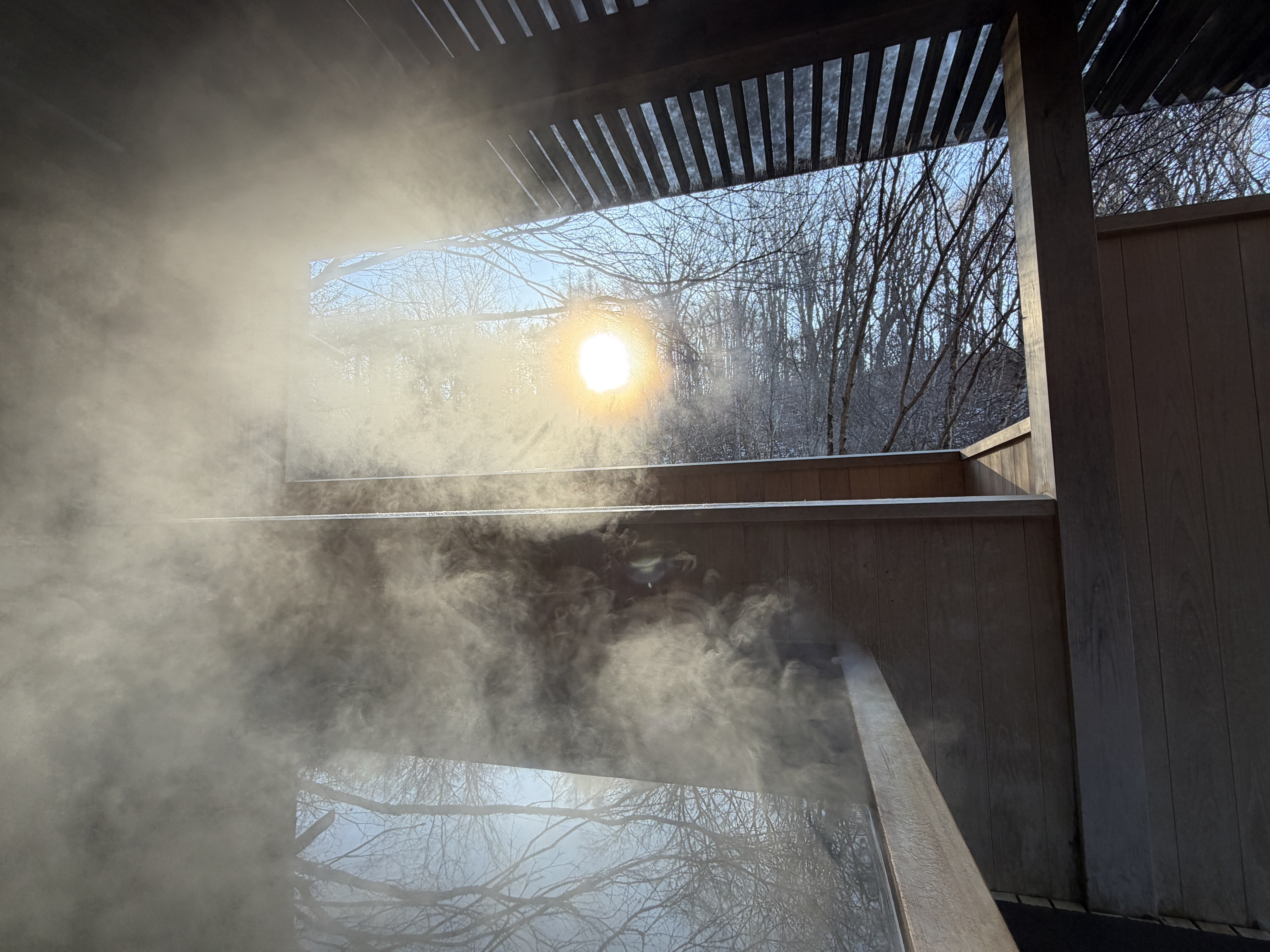Finally, it was time to go to the natural hot spring bath. Luckily, this ryokan has a private bath that you can use for free for 40 minutes at a time. Going to a hot spring during winter is the best! Now I understand the feeling of the Japanese monkeys (the ones with red faces) in snowy mountains.