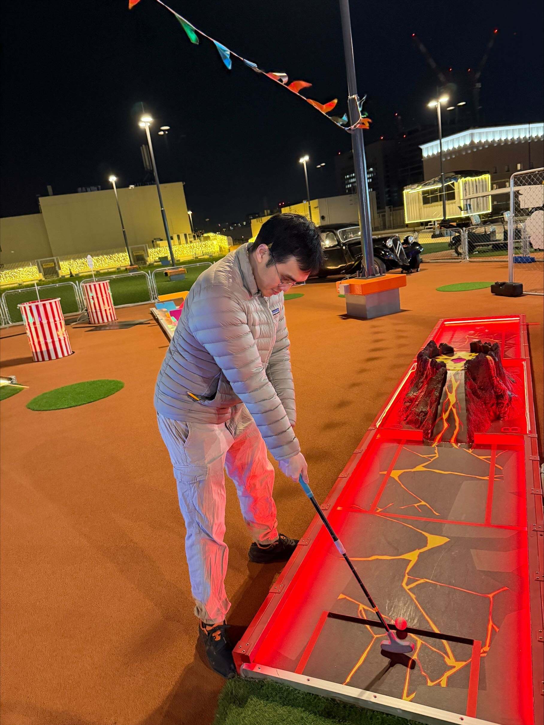 In the rooftop area, there is a BBQ place and a small mini-golf area. Since we have no experience playing mini golf, we tried it, and it was fun! The ticket was 900 JPY per person, which is not too bad. However, that is not what I want to tell today.